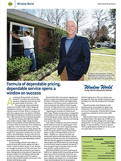 Window World certainly shared in the success, too. Today, it employs 30 full-time employees and uses nearly 40 independent subcontractors. Those figures grew from eight full-time employees and five installation crews.