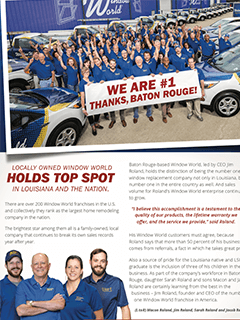 Baton Rouge-based Window World, led by CEO Jim Roland, holds the distinction of being the number one window replacement company not only in Louisiana, but number one in the entire country as well. And sales volume for Roland’s Window World enterprise continues to grow.